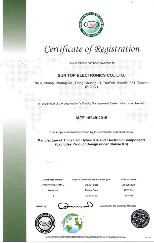 当社は製品品質を絶え間なく向上し、市場に適応してお客様に最先端・高品質のサービスを提供することを長期的な経営理念としています。国際規格ISO 9001:2015及びIATF 16949:2016 自動車産業向け認証の取得しました。厚膜ハイブリッド集積回路(Thick film Hybrid)車載用電子市場をリードし、お客様に保障された、体系的管理による質の高い製品を提供する取り組みを続けていきます。
